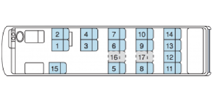 定員17名(正席15+補助席2) 後方席をサロンシートに変形することはできません