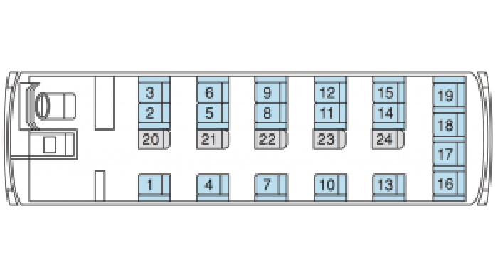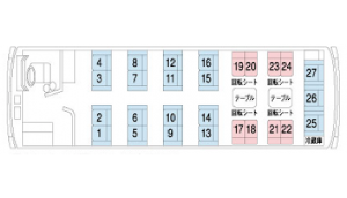 定員24名(正席19+補助席5) 後方席をサロンシートに変形することはできません