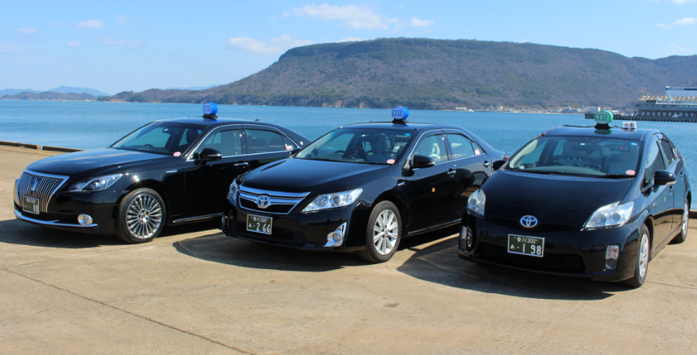 マジェスタ、カムリ、プリウスなど様々な車種をご用意。定員3~4名。